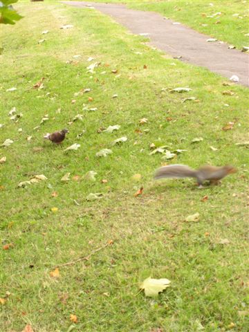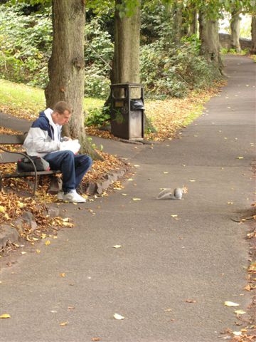 到了後山 Brandon Hill 盪鞦韆的同時,看到以往常照面的松鼠們,又想到小巷說出令我咋舌的「英國人吃松鼠」奇聞,就找出相機來把牠們的逗趣身影拍了拍。遇到了個男子,身邊圍了一堆貪食的小鬼;突然覺得他是用核果在飼養小鬼、好大啖肥美嗎?跟他相視對笑的同時,他那眼神突然讓我覺得詭異了起來......(以下不是懸疑小說,可闔家閱讀,謝謝)
