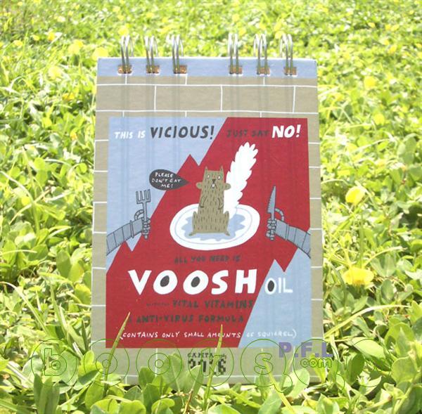 再回到我的後山 Brandon Hill 盪鞦韆之行,希望男子豢養松鼠後可以大啖肥美這想像,都是我在天馬行空。因為說不定像 VOOSH OIL 筆記本那種仗義執言的松鼠會站出來跟你搖食指說:「請愛用松鼠口味的戒松鼠嚼片」。